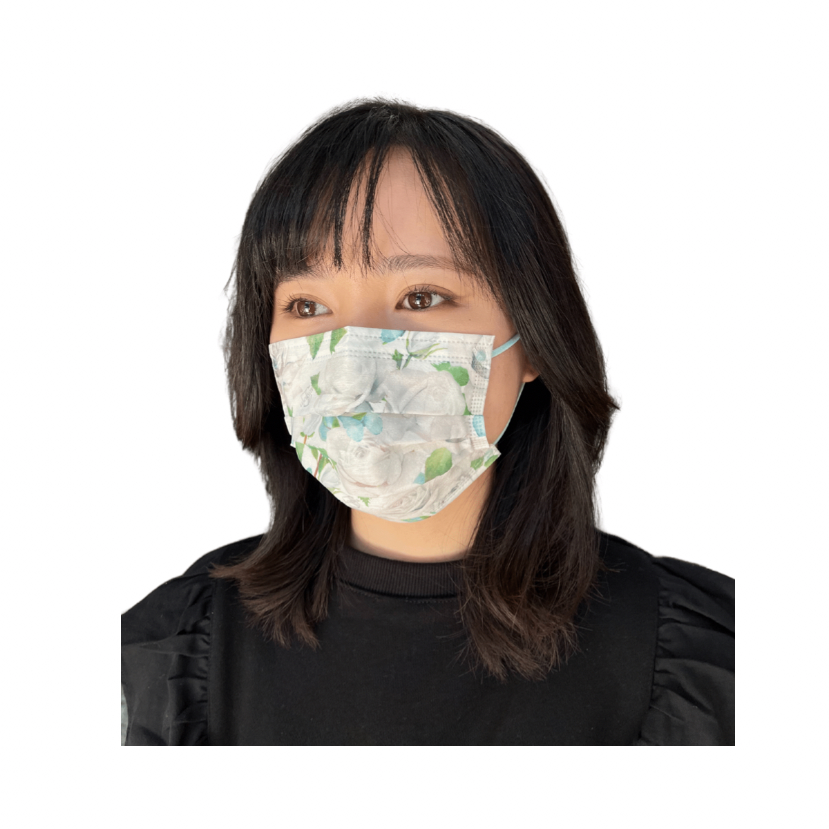ローズ模様がプリントされた柄マスクです